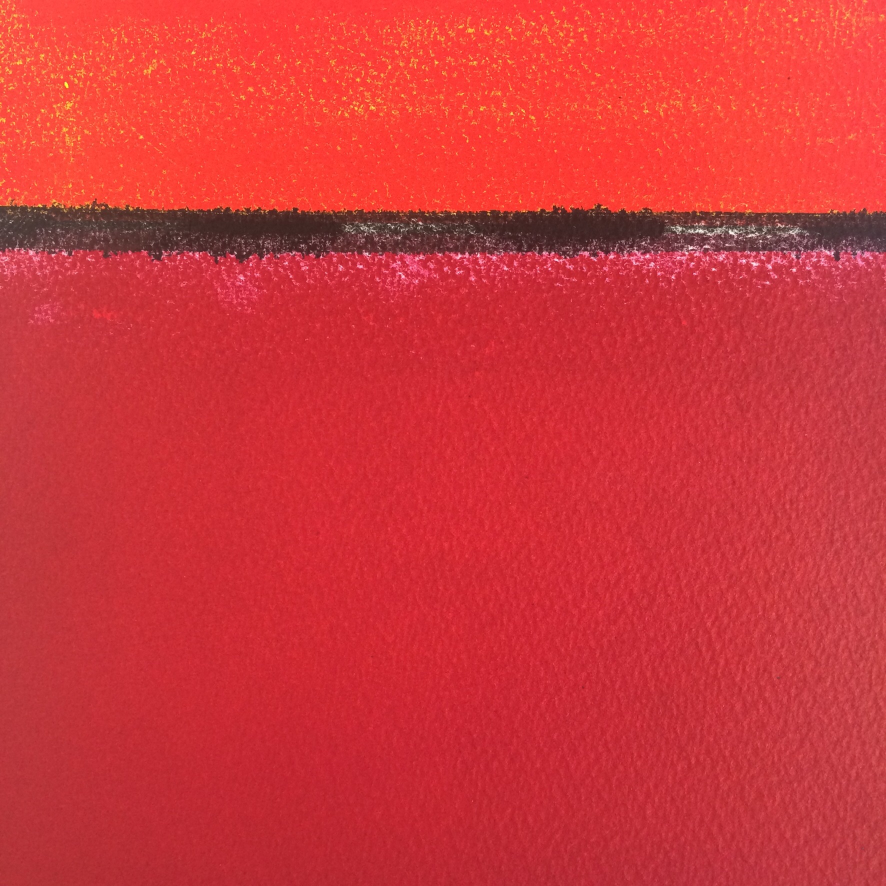 Tout est plat, seules les couleurs entre elles créent une sorte d’espace qui s’apparente au sol et au ciel. Elles donnent du relief. Les étendues sont immenses. Les couleurs diffèrent de kilomètres en kilomètres. Elles sont presque immatérielles comme si elles sortaient d’un ordinateur, comme « éclairées par derrière ». Elles s’illuminent les unes par rapport aux autres et aussi en elles-mêmes par leur nature et leur transparence.